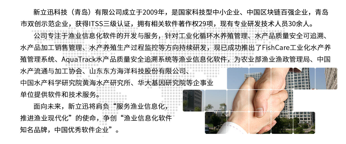 運用“互聯(lián)網+”技術和模式,建立高度漁業(yè)專業(yè)化的互聯(lián)網平臺,提供高效的服務工具和流程,促進種苗,繁育,飼料,養(yǎng)殖,技術和產品服務,物流,渠道和品牌建設等漁業(yè)相關企業(yè)和機構的互聯(lián)網化。